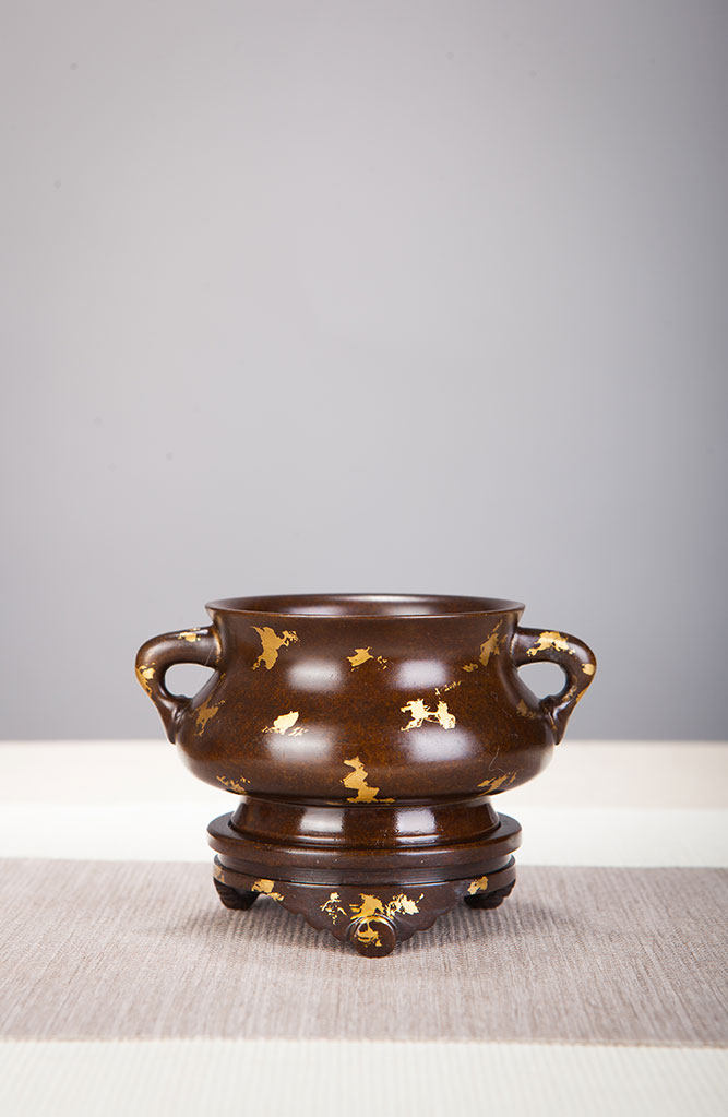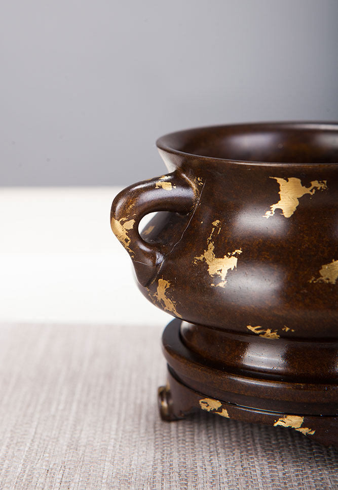 Chen Qiaosheng furnace flagship store New Year high-end antique gift point gold belt seat dragon ear furnace Xuande furnace copper furnace incense burner