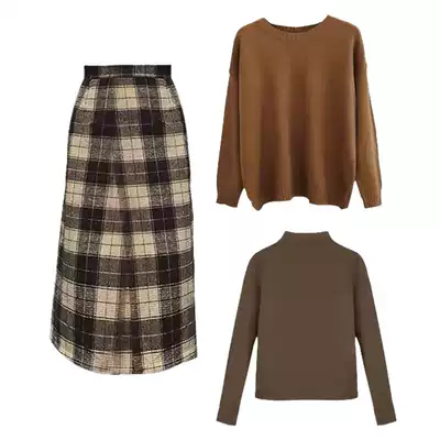 One-piece Curry color ((2020 popular women's new spring)) one-piece Curry skirt (women's fashion New temperament) single-piece Curry sweater (early autumn Net red Hepburn light ripening wind) Curry