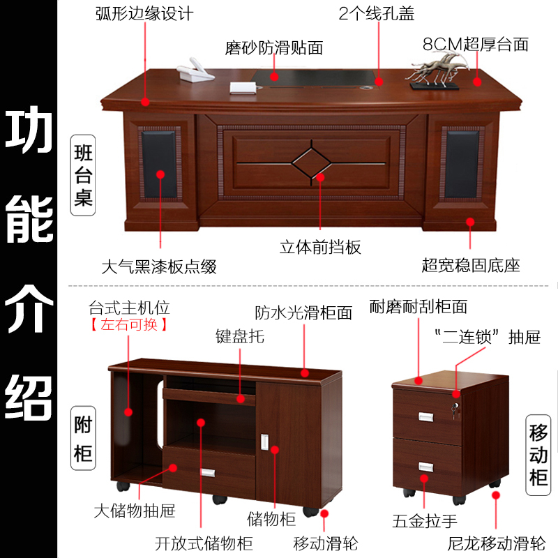 Package installation 1 8m office furniture large Banquet boss table chair desk chair combination 2 meters manager desk 1 6