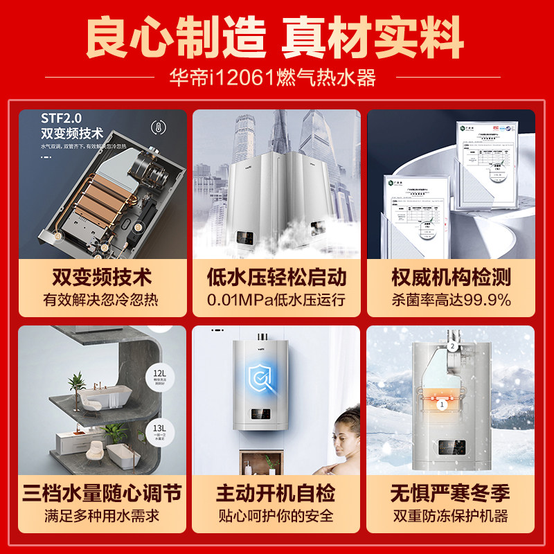 HuaDi gas water heater i12061 home 16 liters 13 liters of natural gas liquefied gas i.e. hot thermostatic strong row home-Taobao