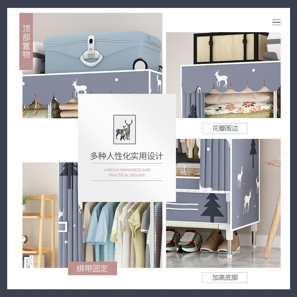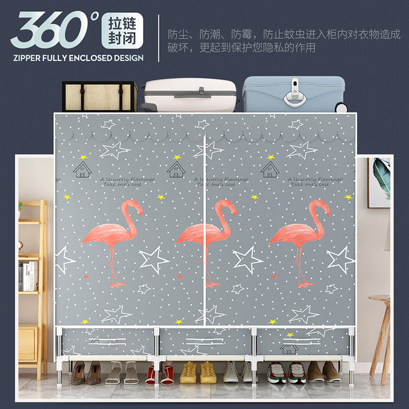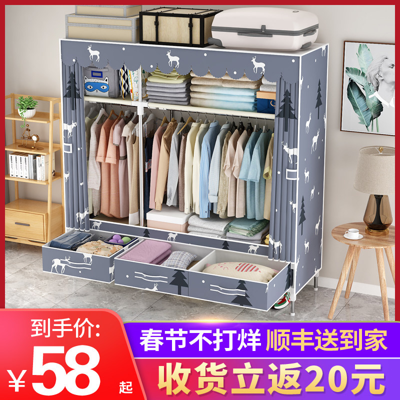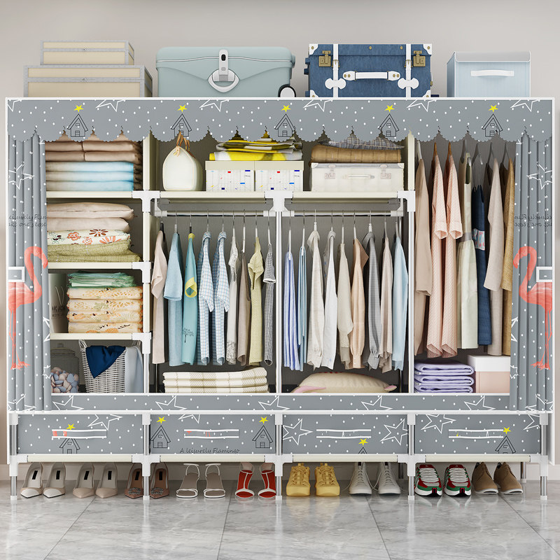 Wardrobe simple wardrobe with drawer Oxford fabric modern simple rental room bedroom double hanging clothes cloth wardrobe