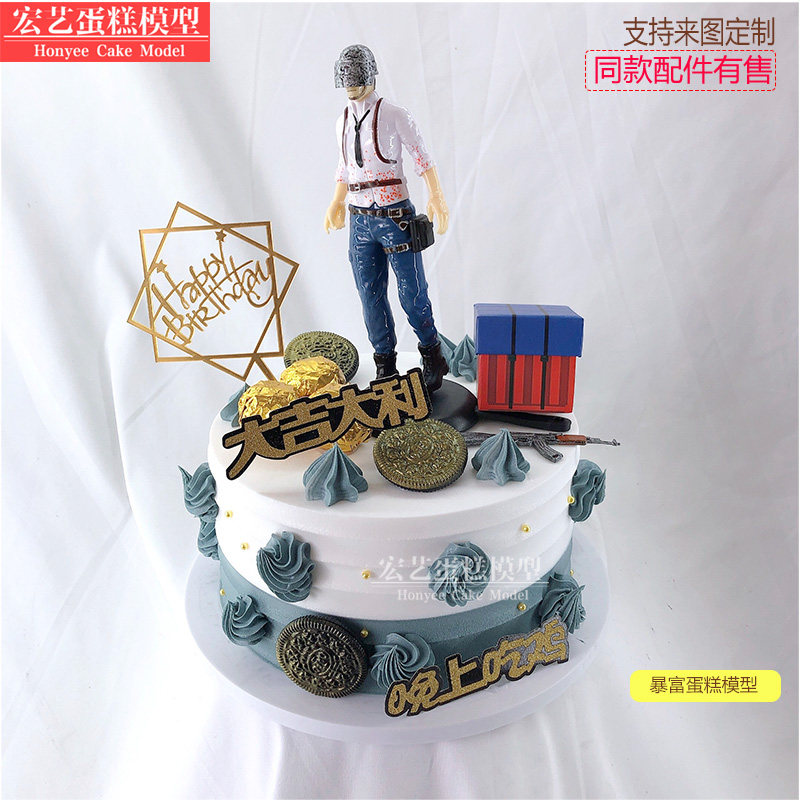 Macro-Art Cake Model Emulation Customized Mesh Red Creative Storm Rich Couple Eat Chicken Pop Fake Cake Sample X