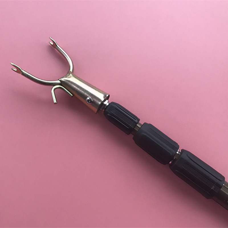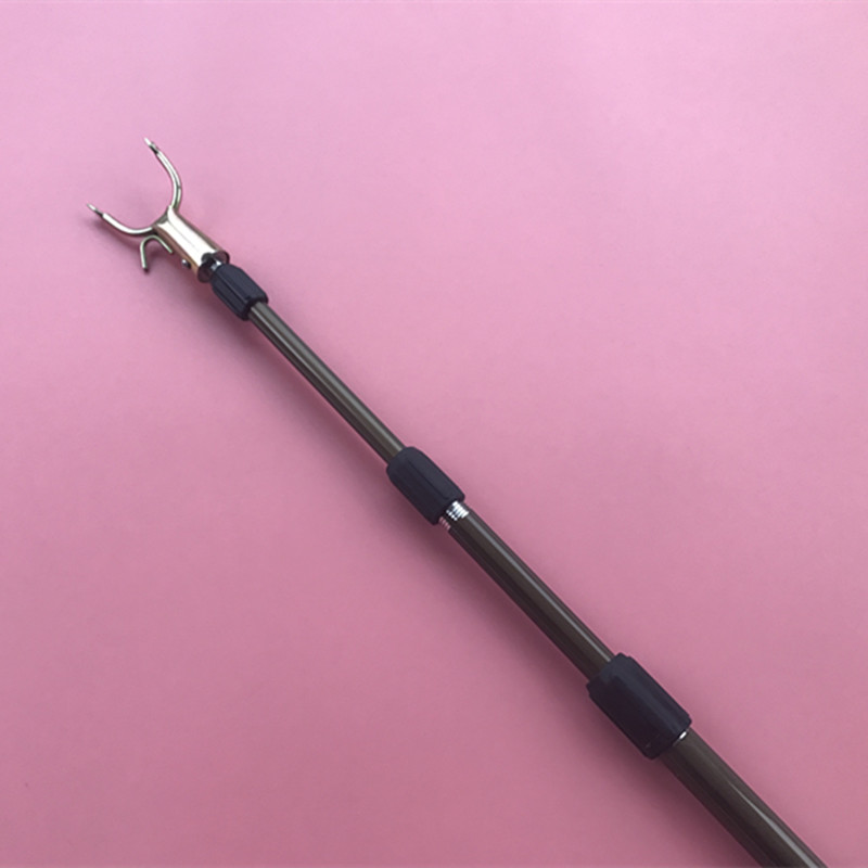 Tea colour round outer lock aluminium alloy rod telescopic clothes fork hook 2 m 3 m 8mm 8mm with hook for hanging clothes