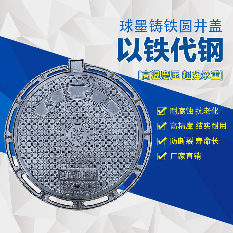 Duplex iron sealing pressure wells five anti-sediment card spring cover inner round round sewage sand cover