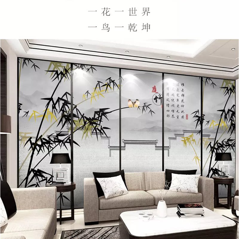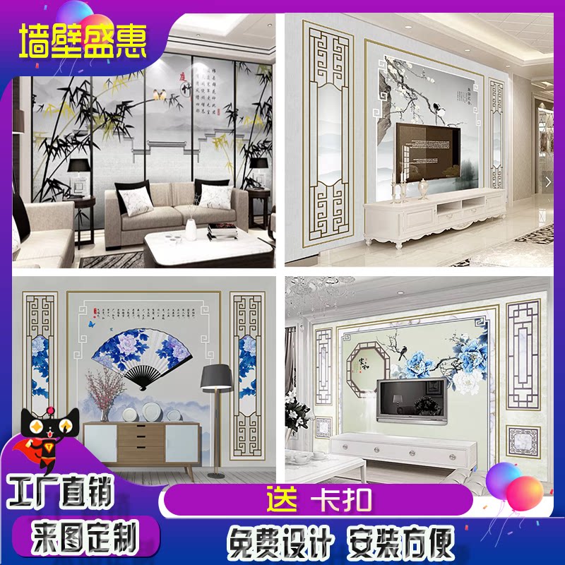 Chinese style 3d TV background integrated board painting 5d living room wall panel decoration 8d bamboo wood fiberboard painting with its own border