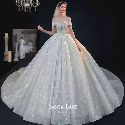 Wedding dress 2021 new bride winter shoulder simple atmosphere luxury heavy industry trembles long tail dress
