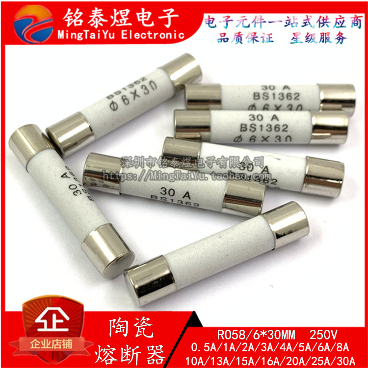 R058 ceramic fuse tube BS1362 6 * 30mm fuse 1A2A5A-20A25A30A R058