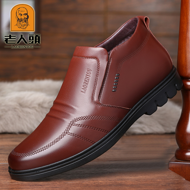 Old man's head shoes winter plus heat high-help cotton shoes male genuine skin and old-age leather shoes men's boots