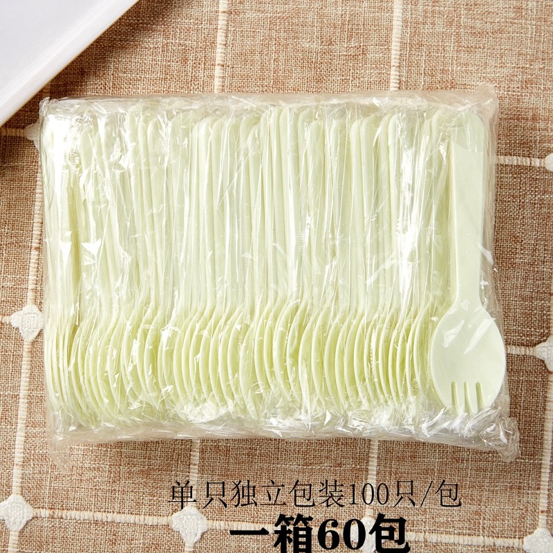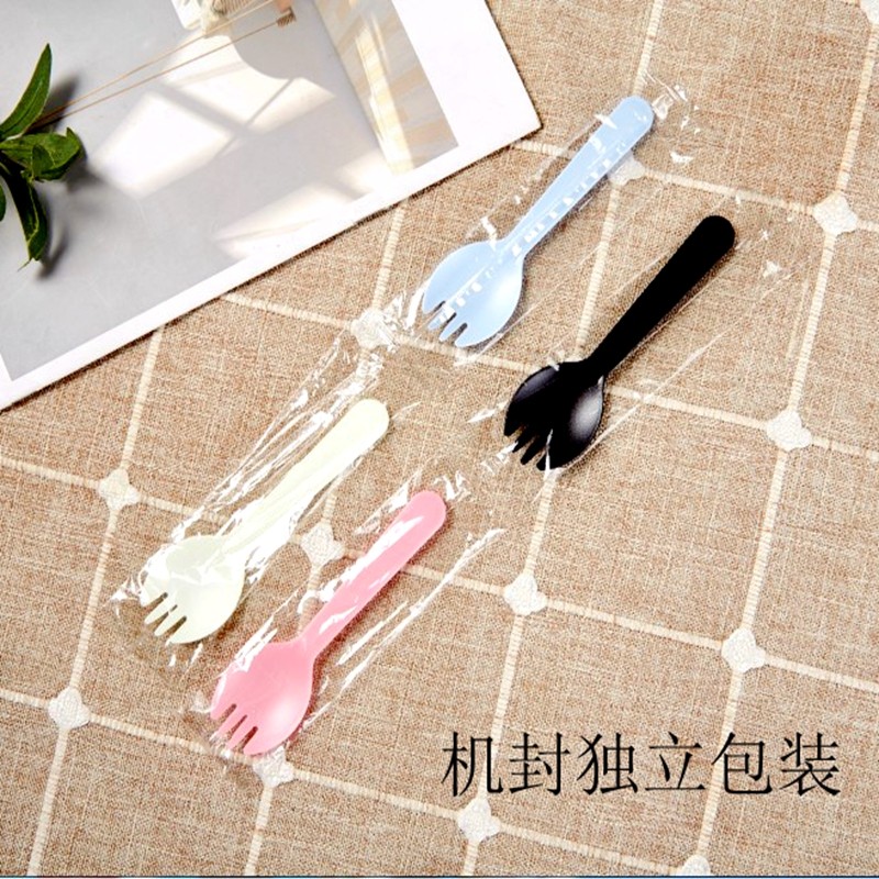 Disposable spoon fork fork spoon Fruit fork Cake tableware fork Plastic independent packaging dessert spoon