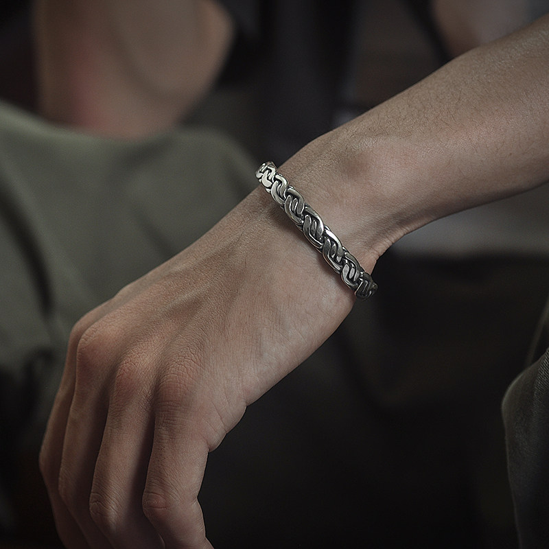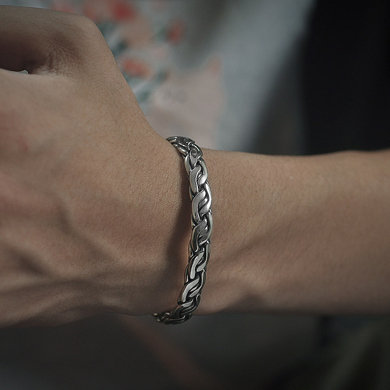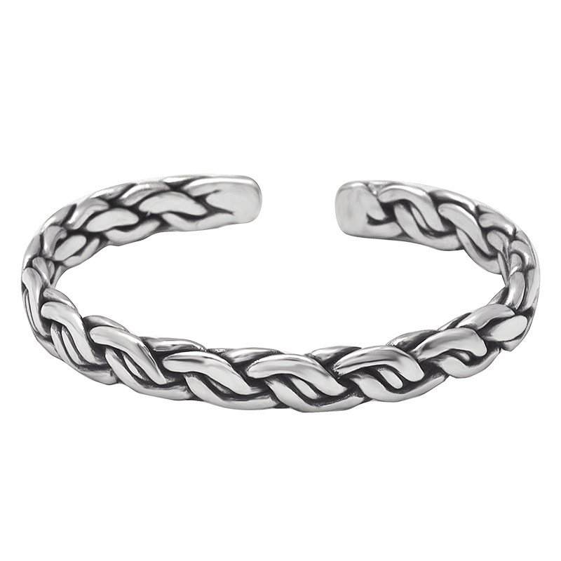 S925 pure silver love interwoven woven bracelet handmade lovers hemp flower personality Thai silver retro bracelet for boyfriend gift