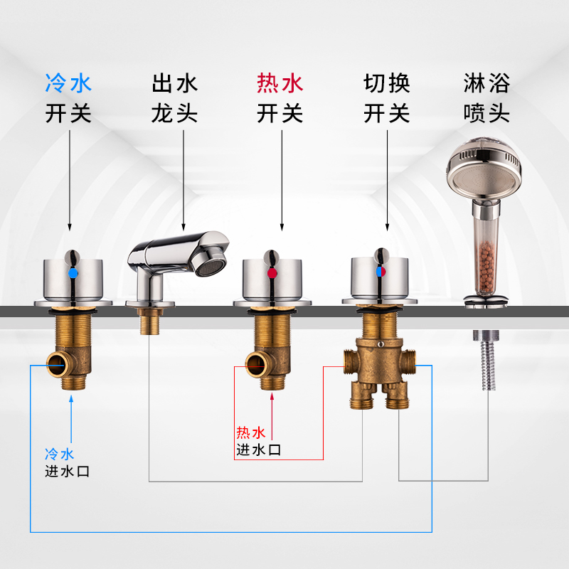 Cooling water switch single hot switch master switch manifold classic three-piece hand spray three-piece, seven-bar leading seven sets full