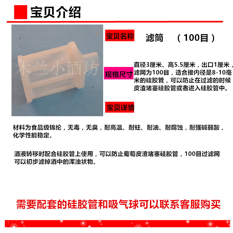 Filter Wine Mesh Filter Wine Web Filter Cartridge Self Brewed Wine Tool Filter Anti-Clogging Front Strainer Fitted With Silicone Tube External