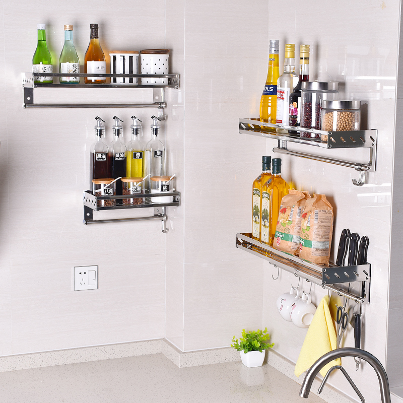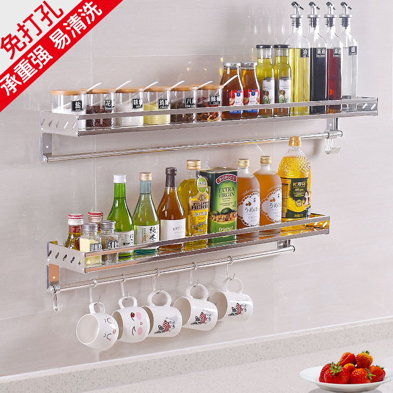 Free Punching 304 stainless steel wall-mounted No marks on wall Narrow Rack Rack Kitchen Shelve seasoning to contain walls