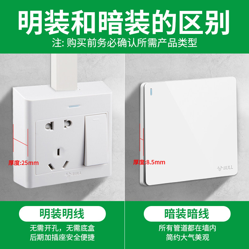 Bull open-mounted switch socket type 86 open wire box household ultra-thin porous receptacle panel with one open five-hole socket