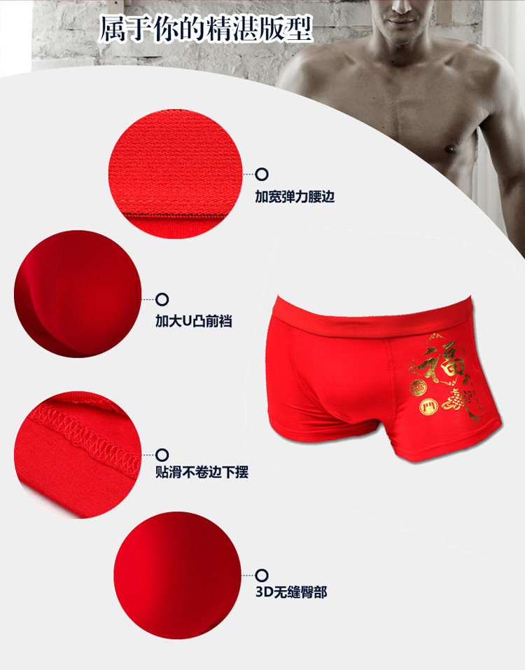This Life Year Red Underpants Men's Underwear Four-corner Pants Modale Cotton Wedding Youth Is Bull Year Red Four-corner Pants Head