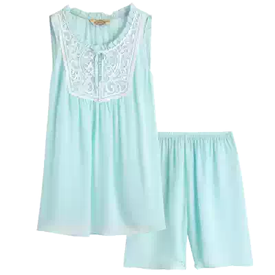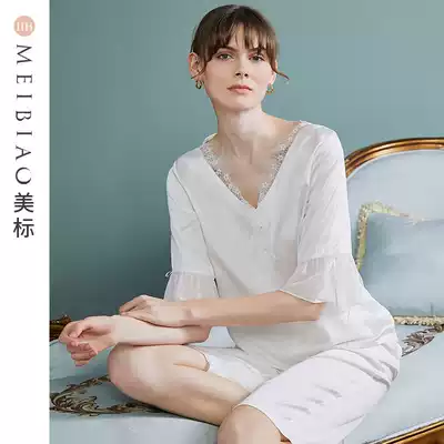 (Special clearance)American short-sleeved silk pajamas two-piece suit Women's spring and summer mulberry silk silk home clothes