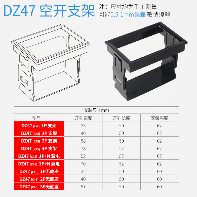 C45 bracket frame DZ47 air open small circuit breaker fixed bracket mounted 4P plastic fixed base buckle