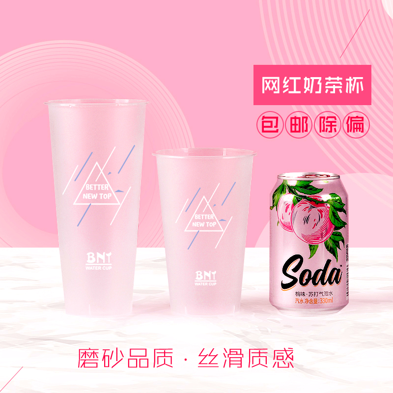 2021 Internet celebrity milk tea plastic cup 90 caliber disposable frosted injection cup takeaway commercial drink cup with lid