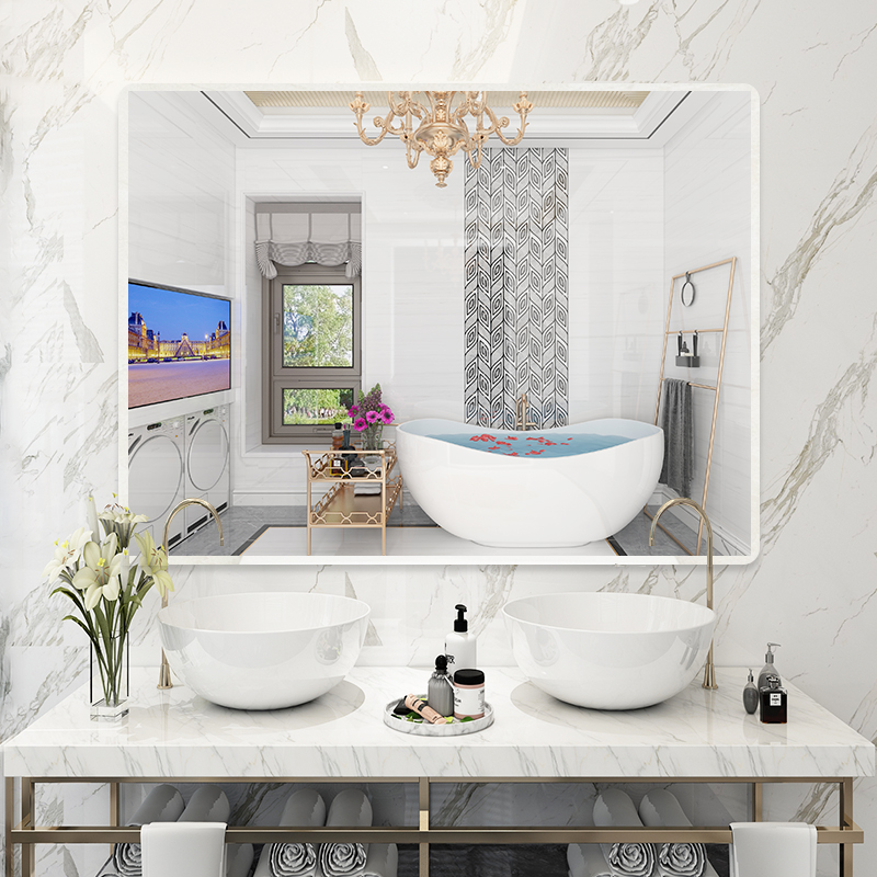 Bathroom Mirror StickWall Self-stick Punch Wall Wall Toilet Wall Wall-hanging Glass Toilet Makeup