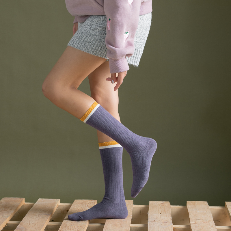 And Knee-stocking Calf Socks day Department Korean version Long Sox Pure cotton socks female midsole Sox 100 lap college wind spring autumn bubble socks