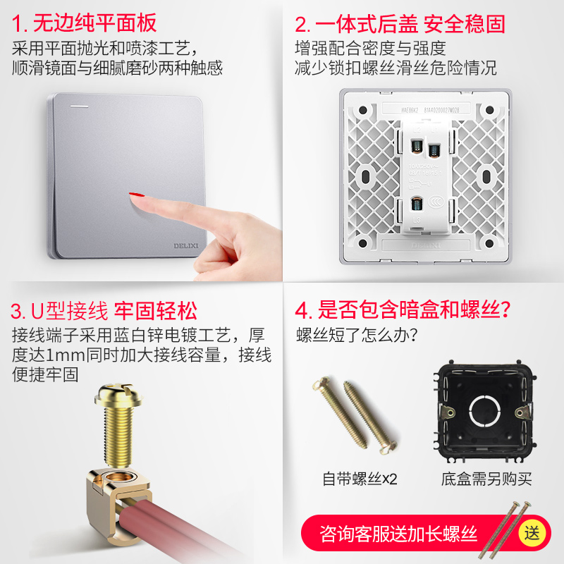 Delixi type 86 wall household silver electric lamp 1 one single open one open double switch panel wall-mounted concealed