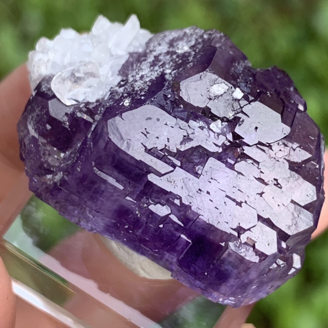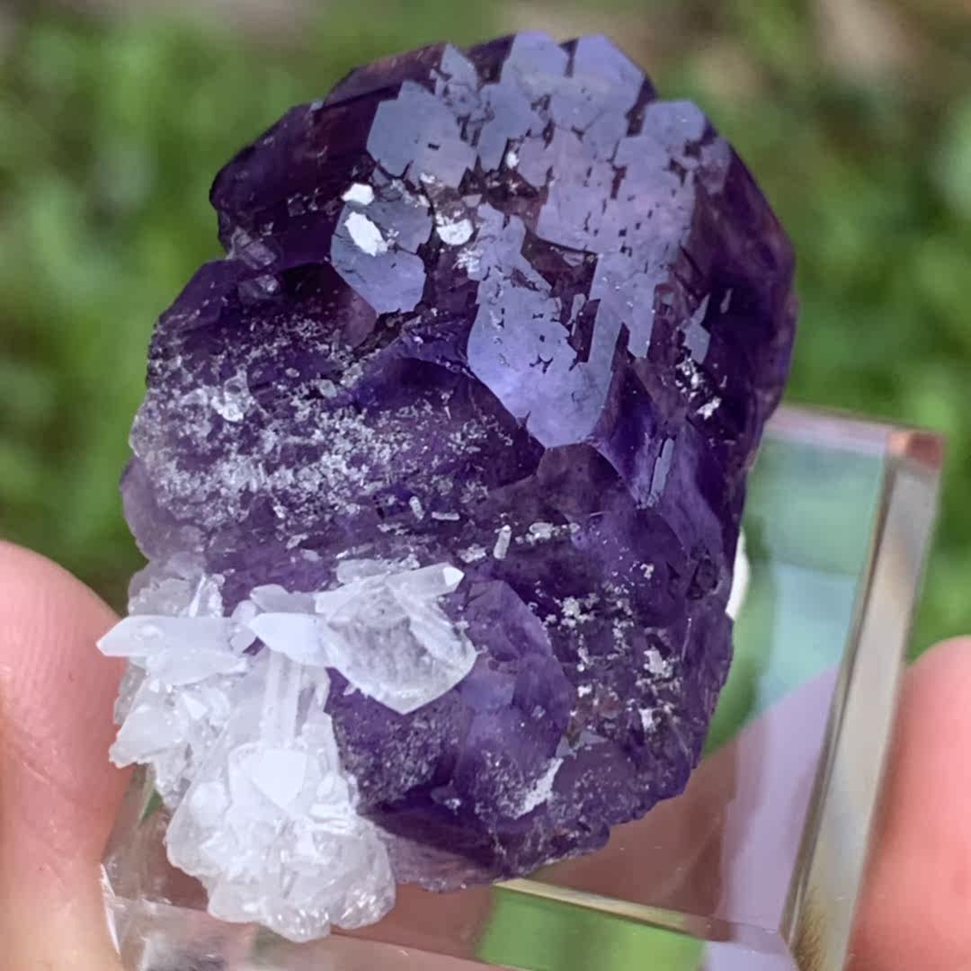 Fujian purple fluorite calcite crystal symbiosis color and luster good natural mineral crystal cat mine collection popular science