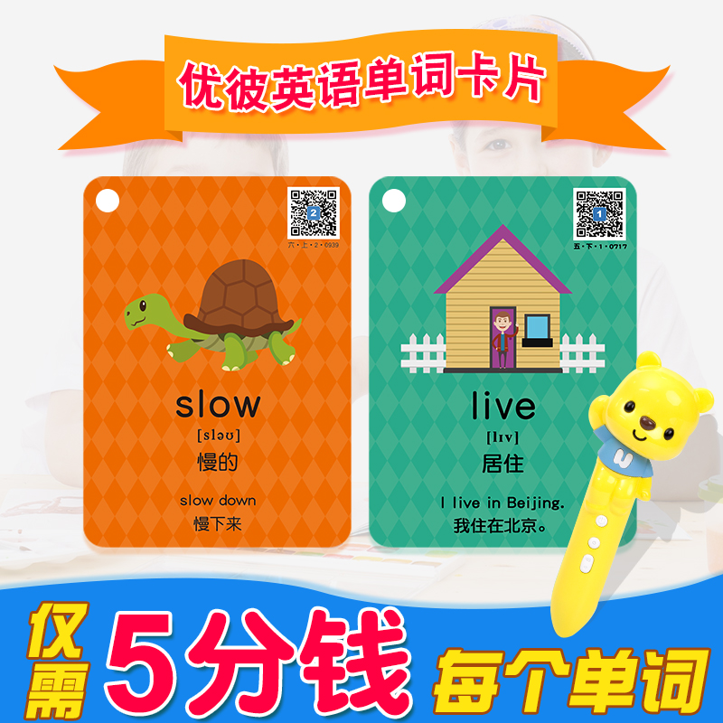 Youbi children's English word cards for early childhood enlightenment Primary school students Teaching materials Children's early learning English point reading pen