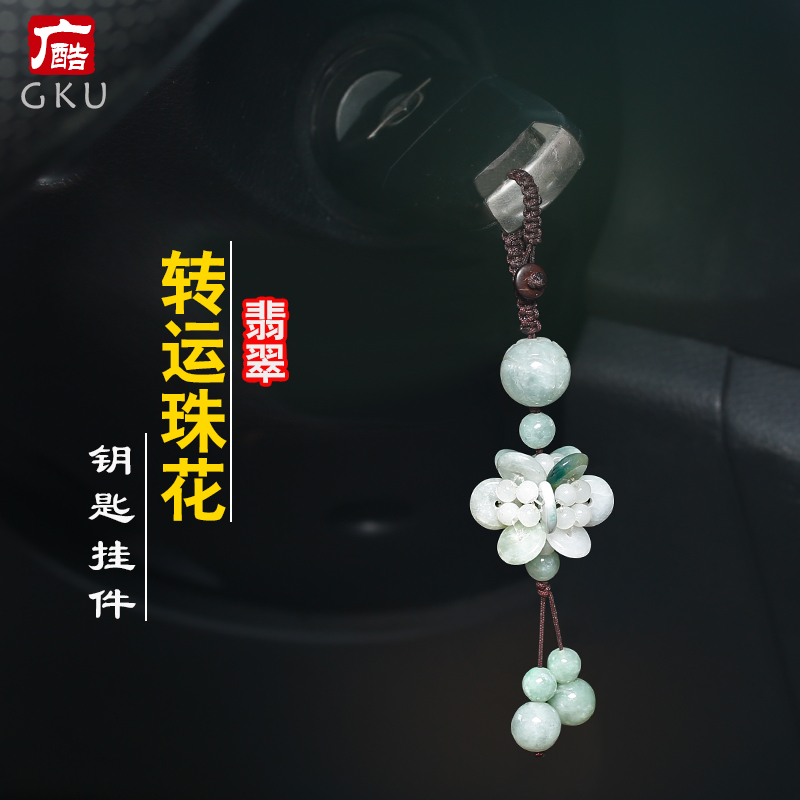 Guangku car key chain pendant high-end emerald lotus key chain jewelry men and women creative personality gift pendant