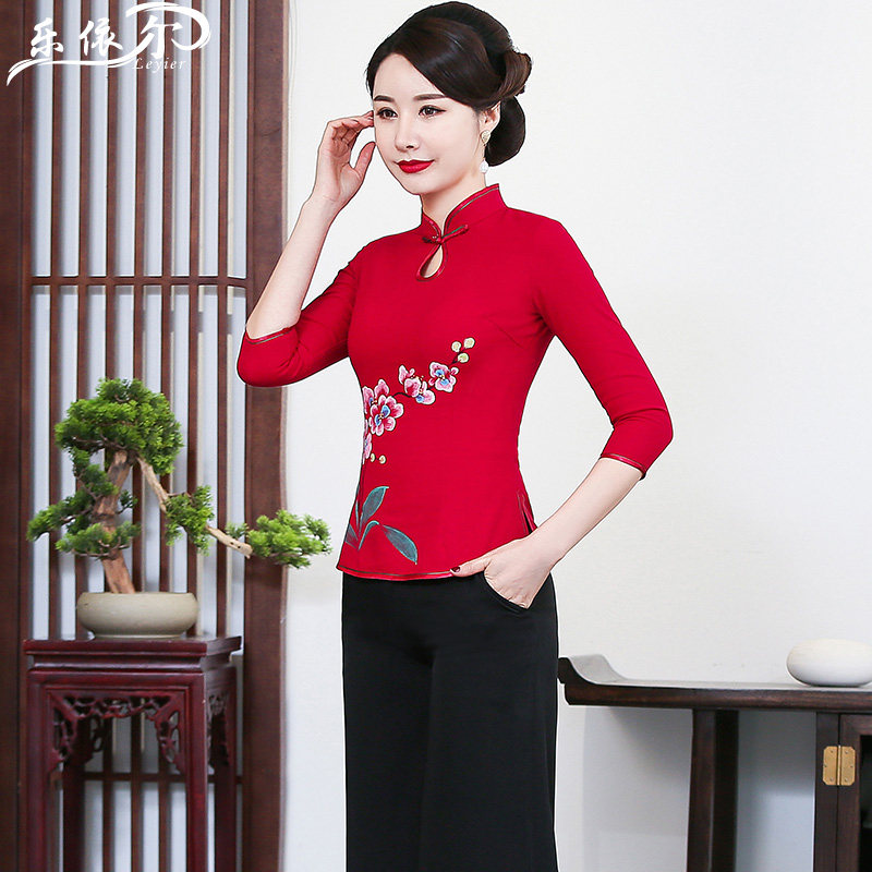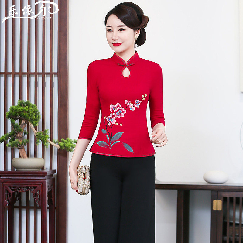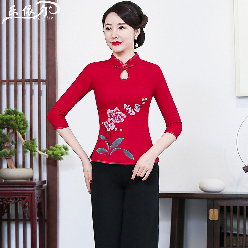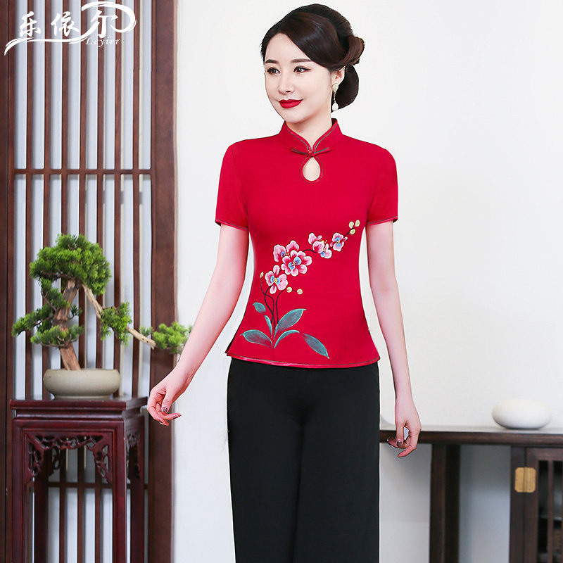 Spring and summer new improved hand-painted qipao fashion cotton linen jacket Chinese Chinatown suit Mom dress wedding banquet dress big size