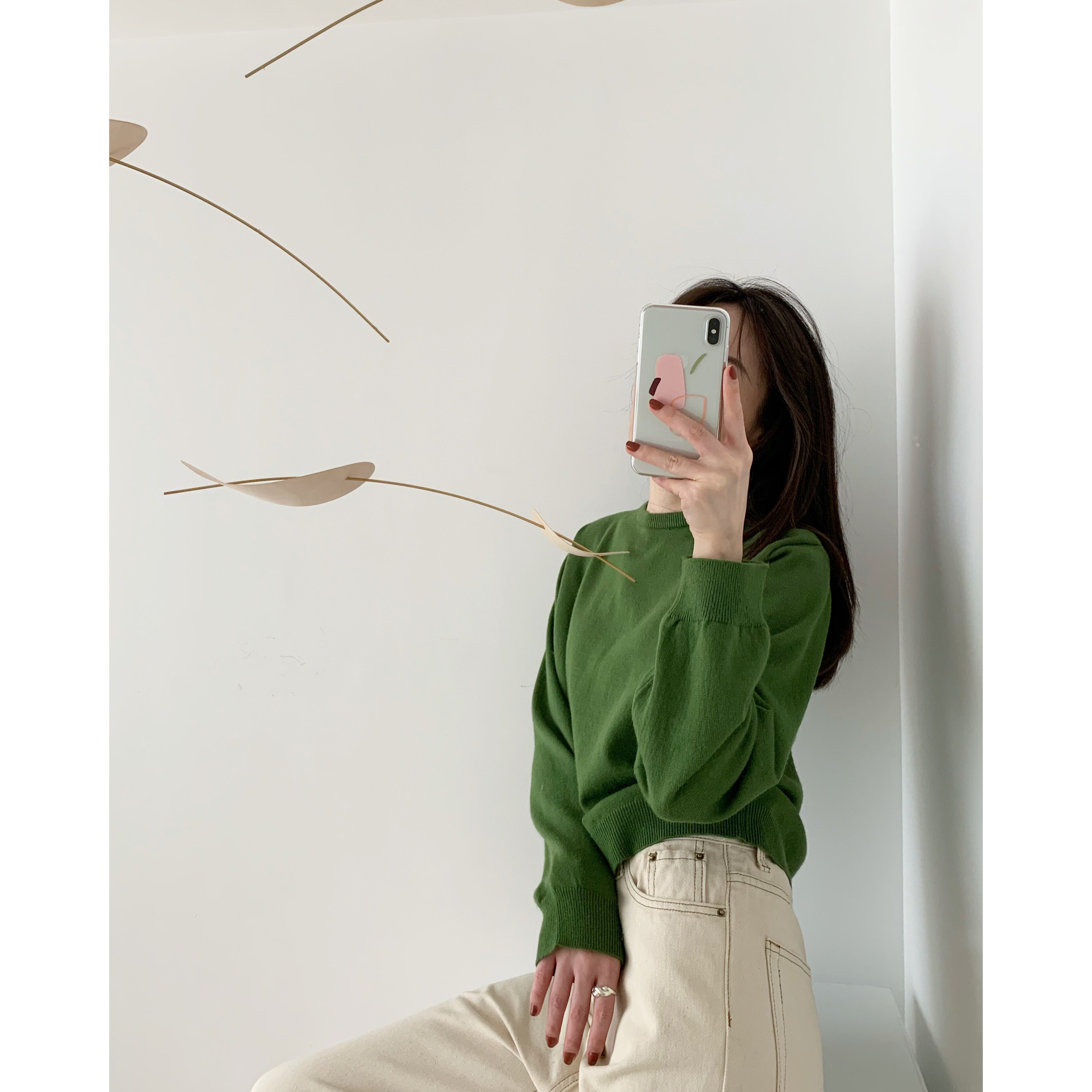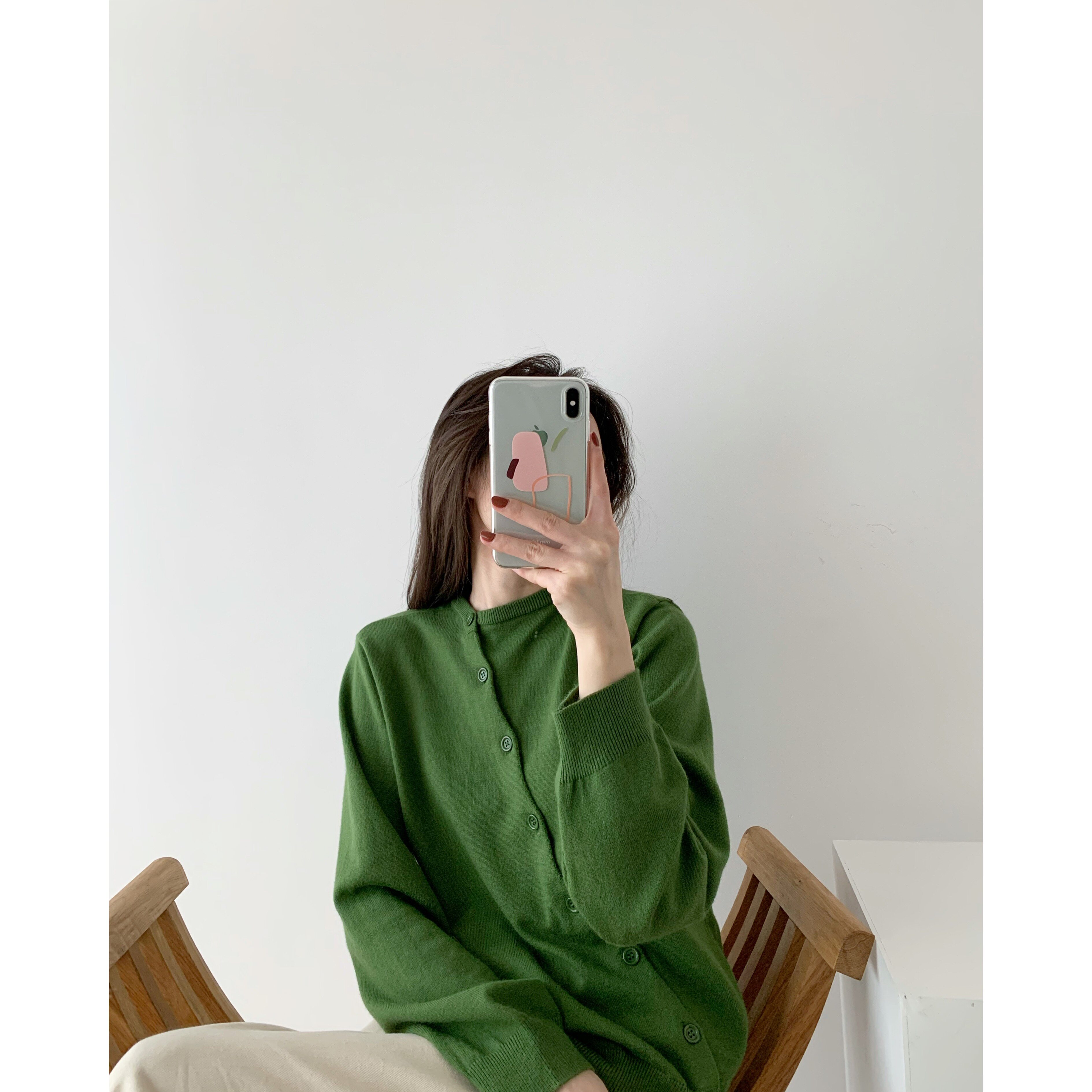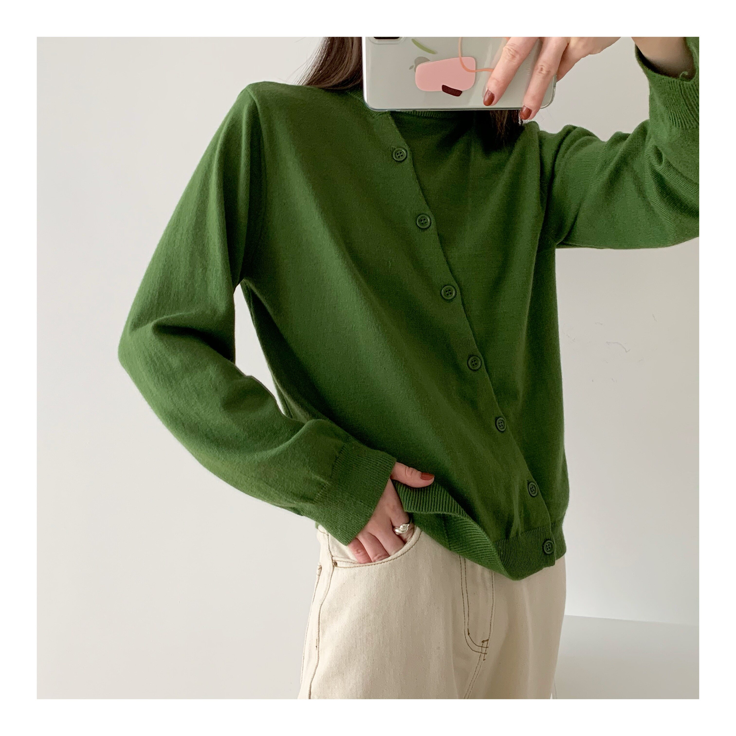ICTS went to Luyang and folded the classic oblique-breasted low-key small crew neck before and after wearing a green cardigan
