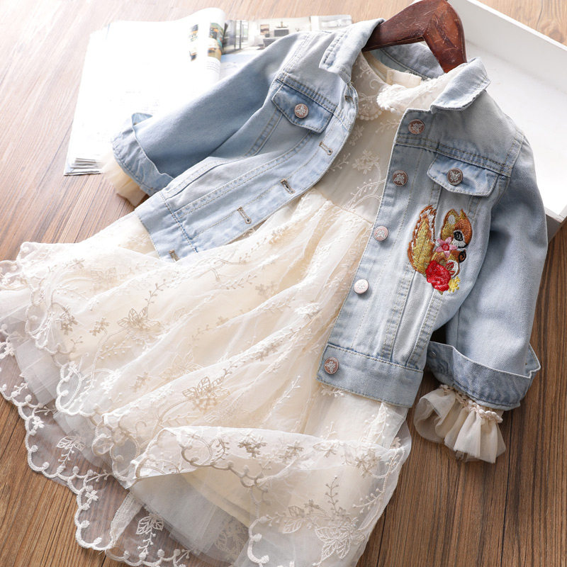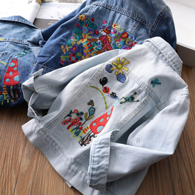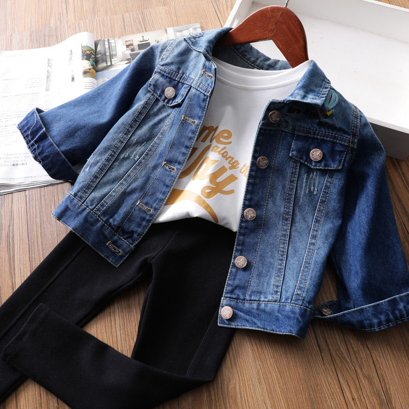 Girl Denim Jacket Spring Autumn Baby Girl's Square Collar Denim Girl Jacket Children's Jersey Child Bottling Tide
