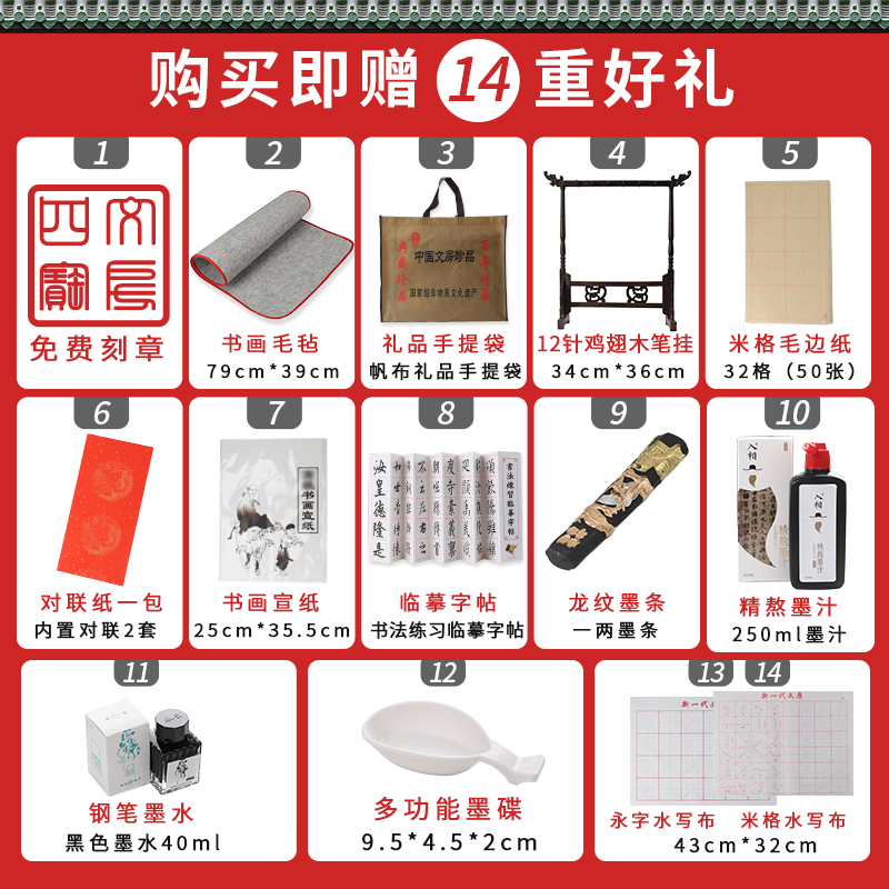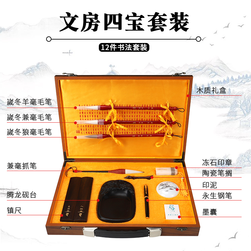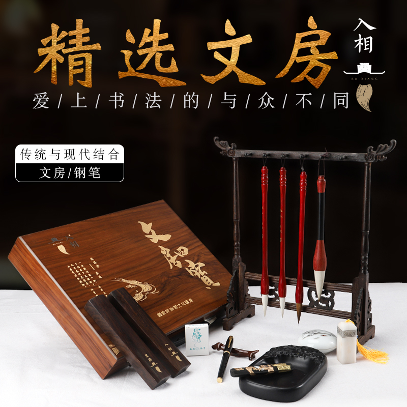 Out will be into the photo room four treasures brush year winter set boutique high-grade gift box immortal fountain pen send people hard pen soft pen calligraphy pen ink paper yan enterprise custom festival traditional culture gifts