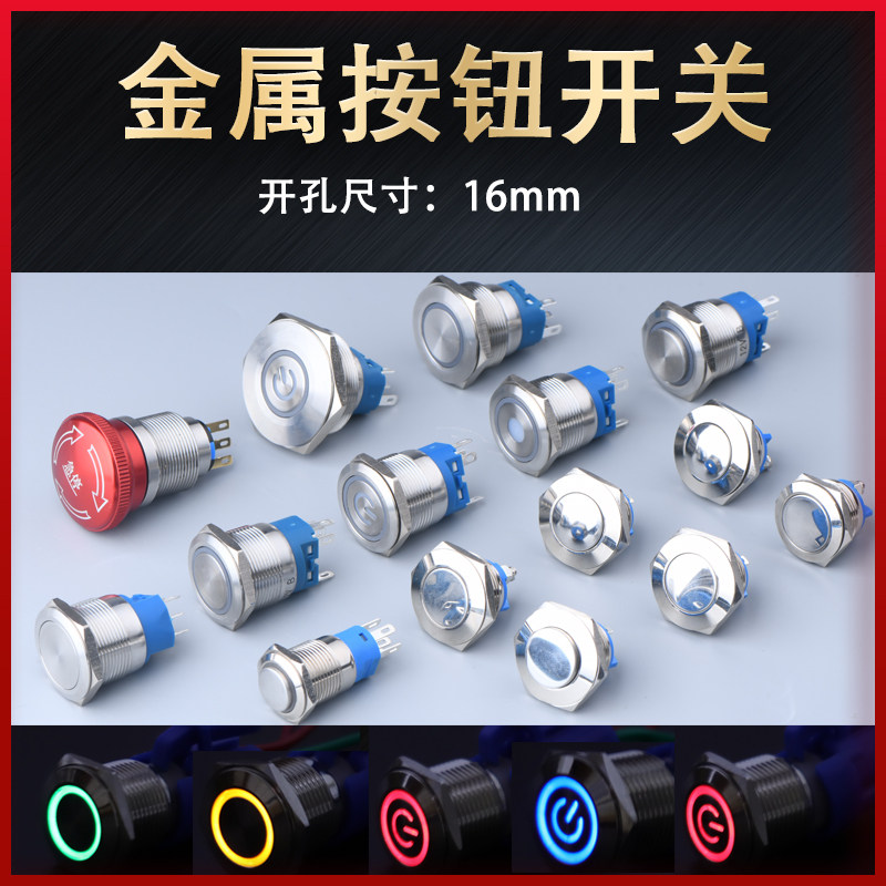 16mm self-reset start button switch Metal small illuminated self-locking waterproof mini 12V24V power supply 220V