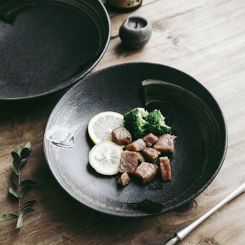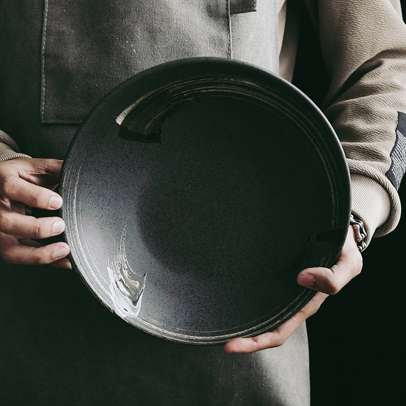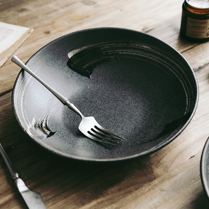 Retro handmade dish plate home large irregular plate Japanese ceramic snack plate pasta plate salad plate