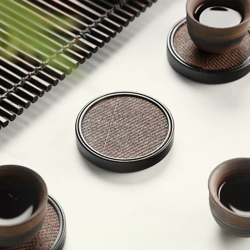 Japanese burnt paulownia coaster insulation placemat kung fu tea set tea ceremony accessories retro rattan tea cup holder pot pad pot holder