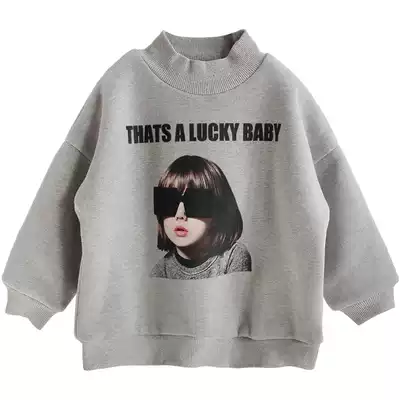 Tian sister grid girls plus velvet thick cotton T middle and large children's high neck pullover casual loose top winter new