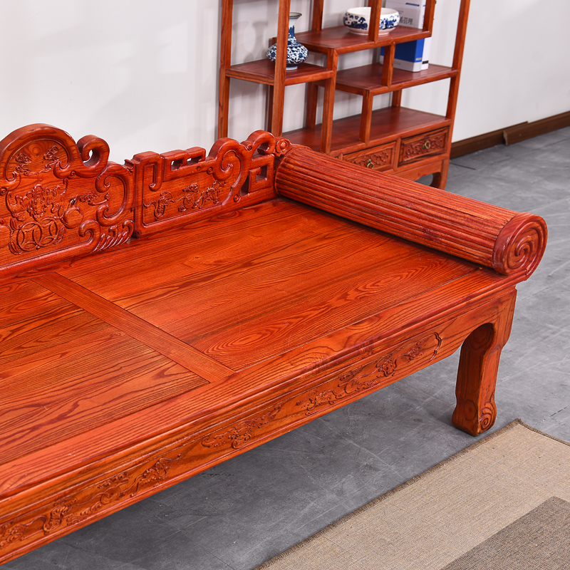 Old Elm Wood Solid Wood Chinese Red Flowers Pear Noble Princess Chair Elm Bed Beauty Bed Deck Chair Sofa-Hair Chair Antique Rohan Bed