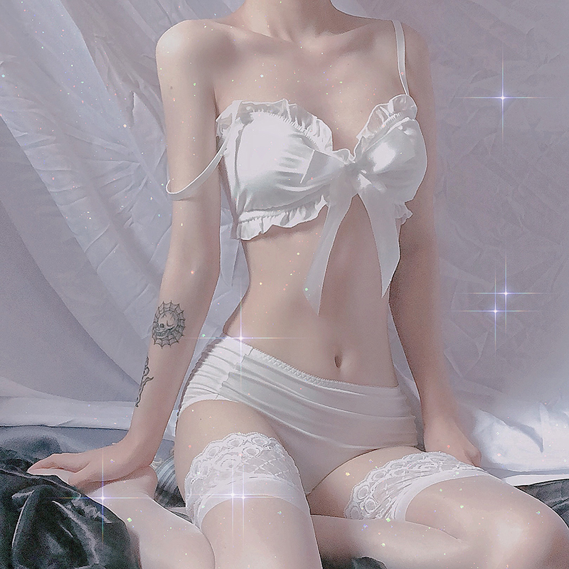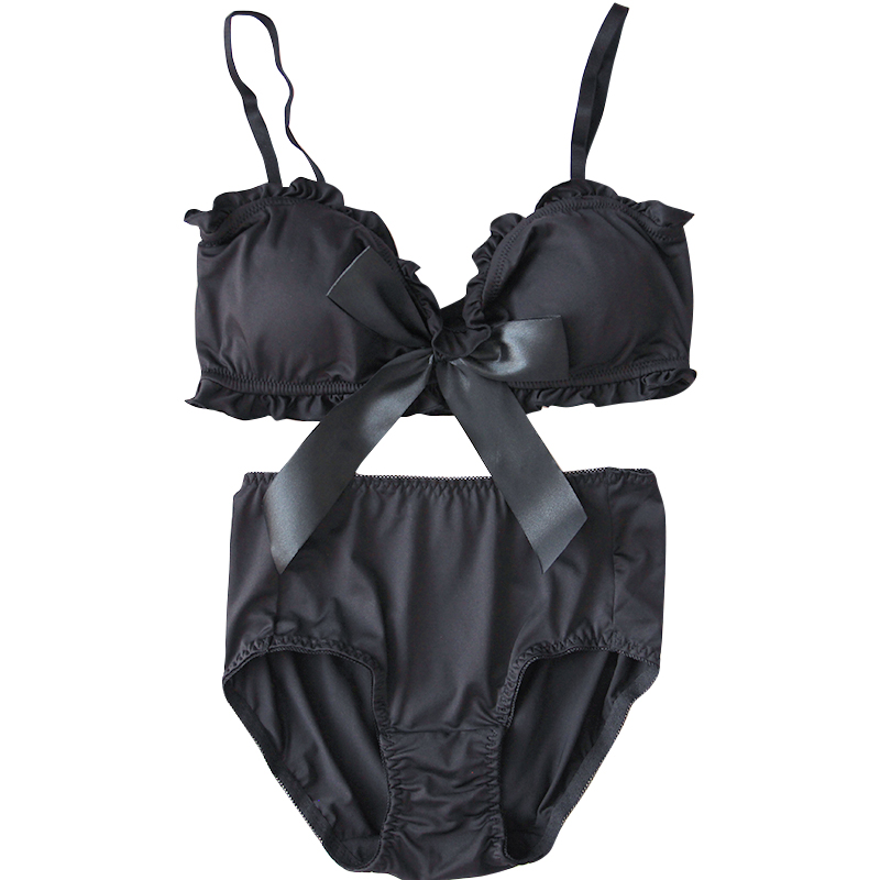 french girls retro bow bra cute lori cotton underwear soft sister small chest without rims underwear set
