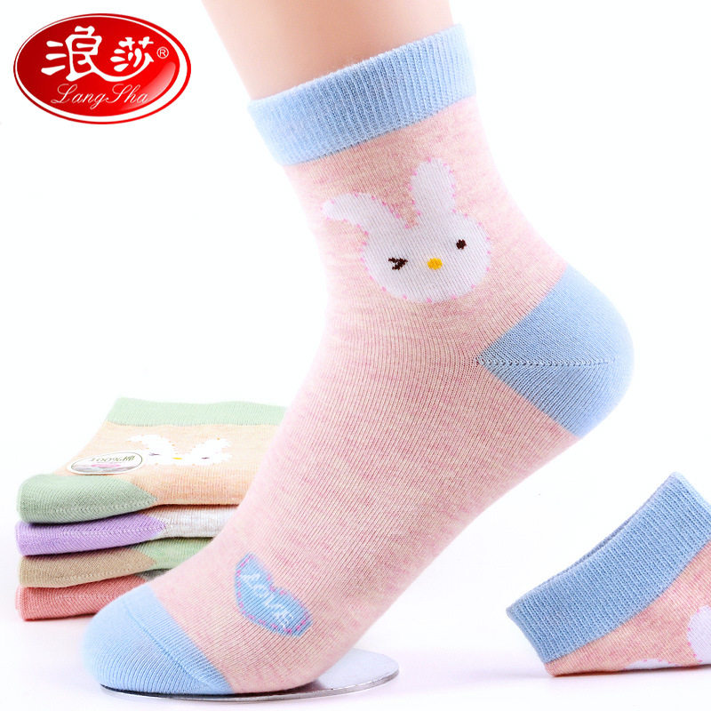 Langsha's new cotton mid-tube socks ladies cartoon women's cotton socks deodorant sweat-absorbing cotton cute student socks