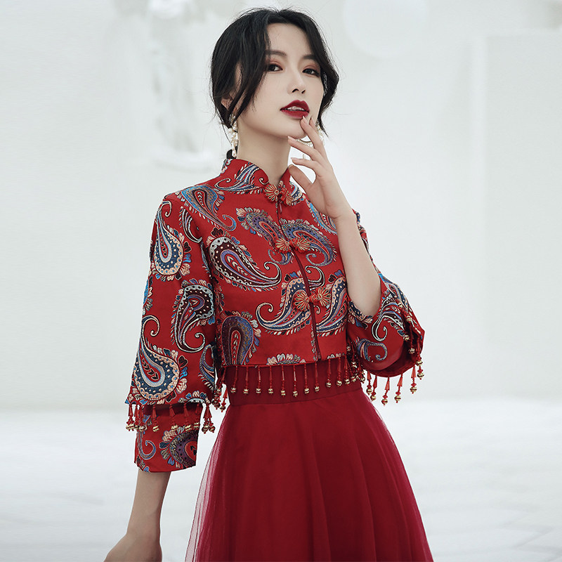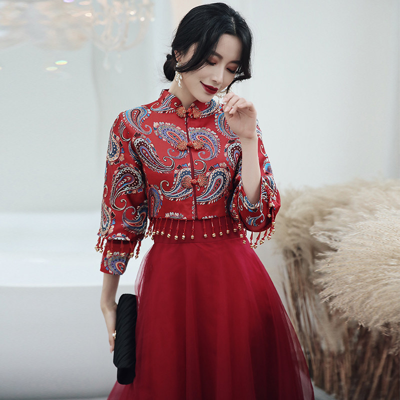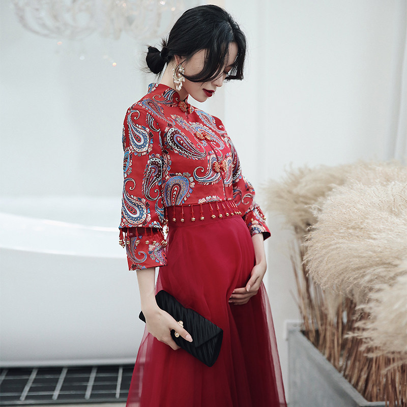 Pregnant women's toast clothing 2021 new bride wine red Chinese engagement clothing back door dress female large size fat mm Xiuhe