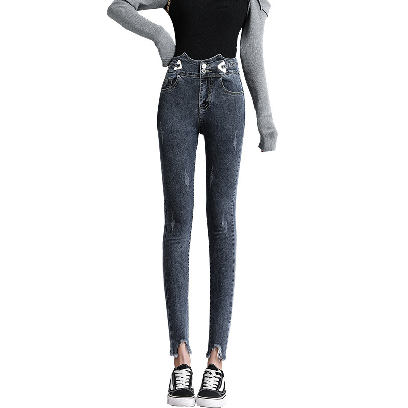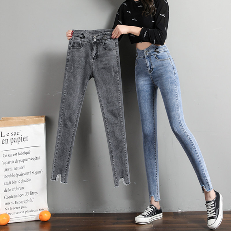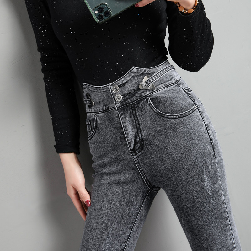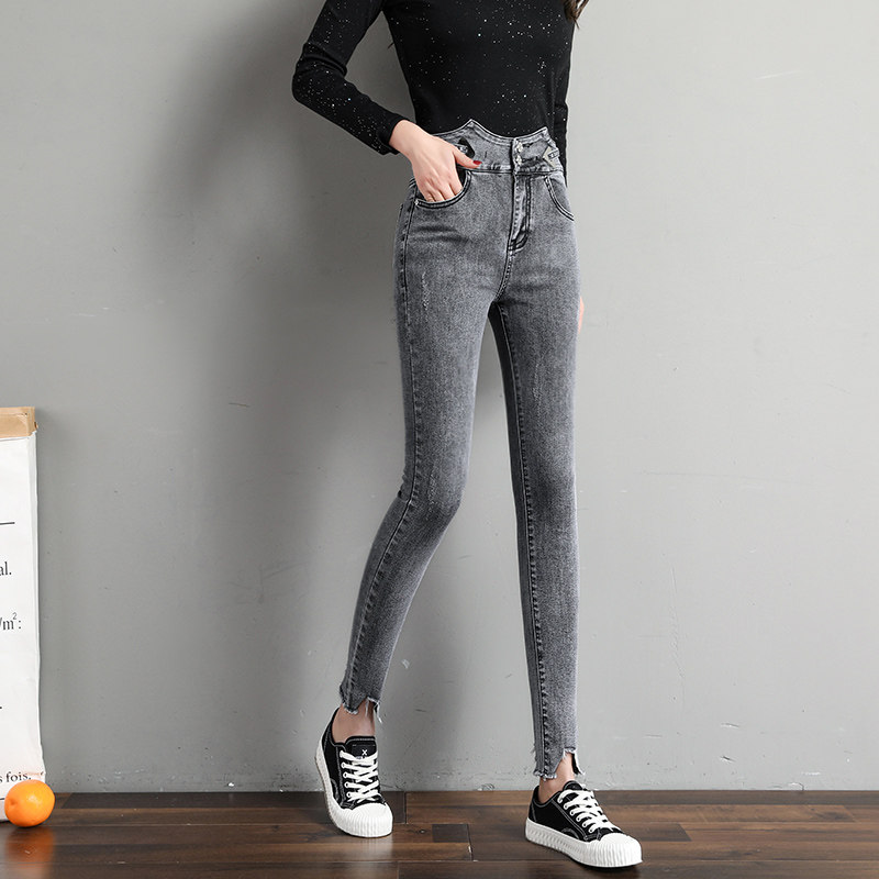 2022 spring and autumn smoke gray jeans women ins tide high waist slim fit slim tight skinny nine-point pants