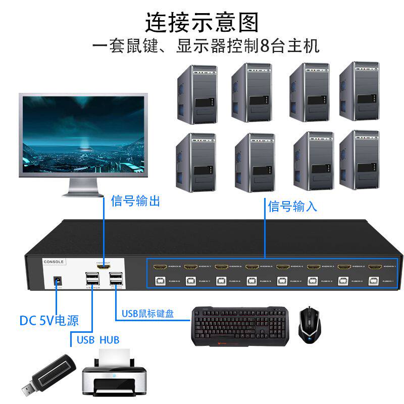 Maxtor MT-0801HK 8-port KVM switch HDMI high-definition screen cutter 8 in 1 out 4K industrial grade