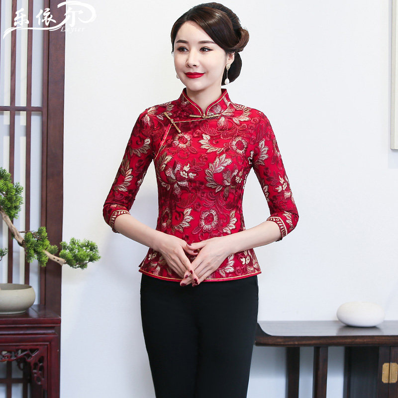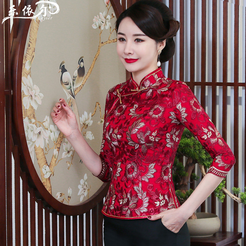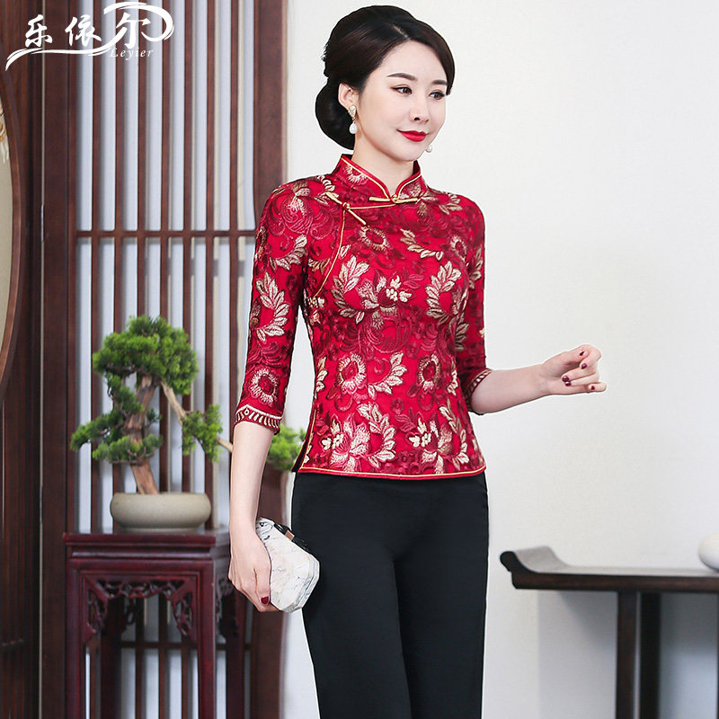Spring Lace Embroidery Improved Qipao Dress Daily Retro Country Wind Blouse Chinese Mother Dress Wedding Banquet Wear Big Size