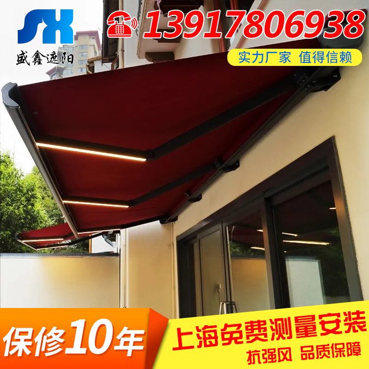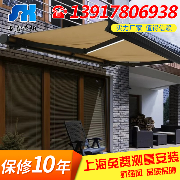 Shanghai hand-cranked courtyard villa parking high-end electric awning retractable canopy full box awning balcony rain ride