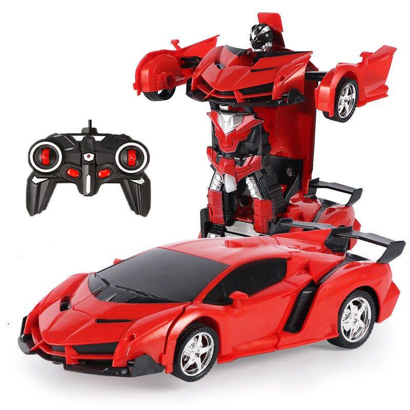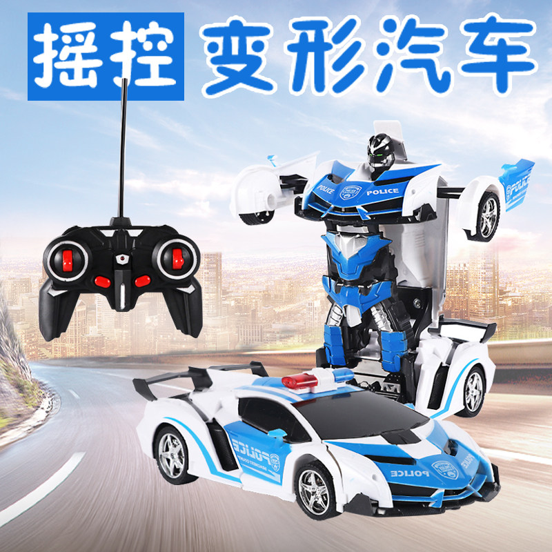 Children's deformation remote control electric toy car wireless charging car police car Transformers robot boy gift