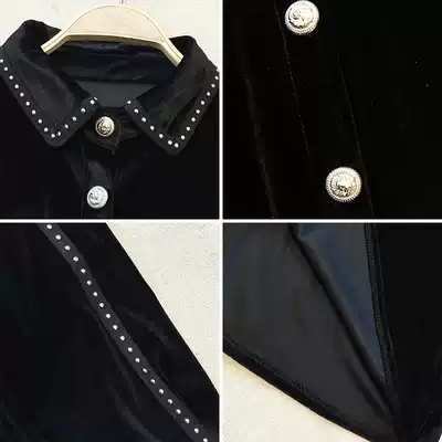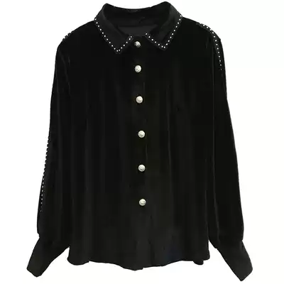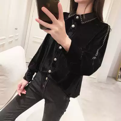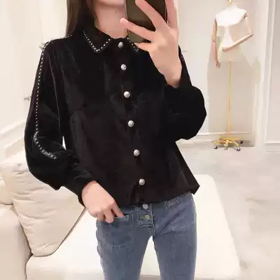 Shirt women's design sense niche 2021 new autumn and winter women's princess style shirt beaded stitching velvet top women