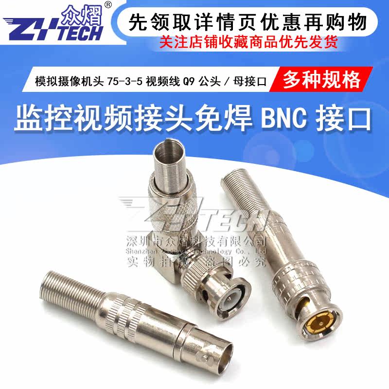 Welding-free BNC joint copper core monitoring joint analog camera head 75-3-5 transmission line Q9 male head female connector