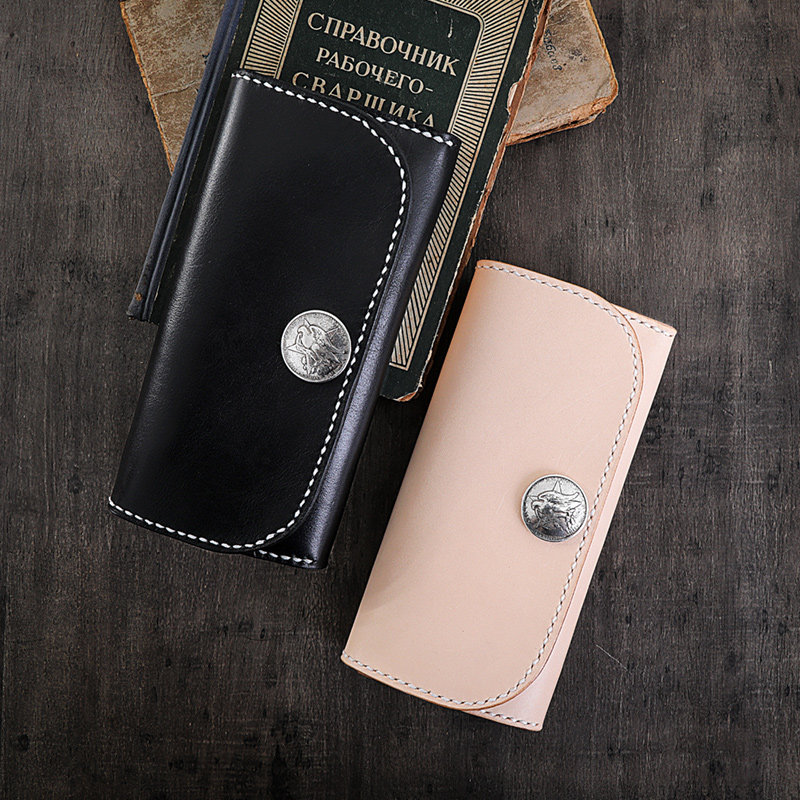 Lacquer Name Original Design Hand Sewn Italy Imported Black Plant Tannic Leather American Retro Buckle Wallet