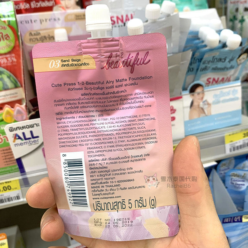 Thailand cute press matte air liquid foundation portable size concealer balance skin tone 03# color 5g