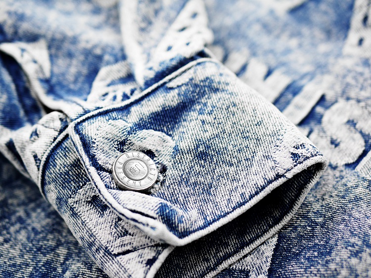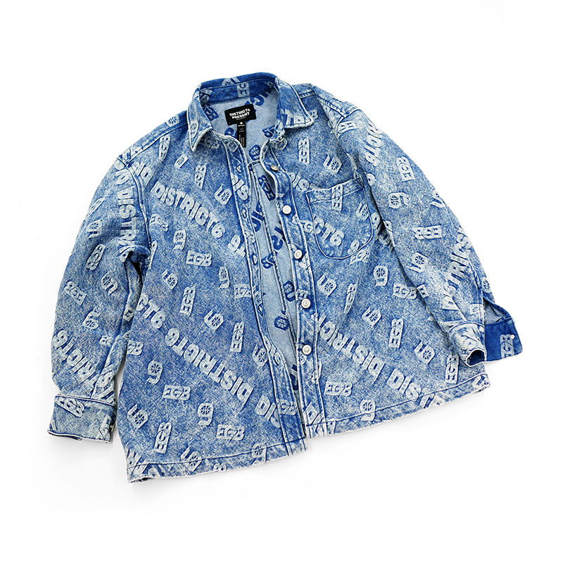 (District 6) Street 100% high-end twill logo snowflake washed denim jacket autumn winter jacket